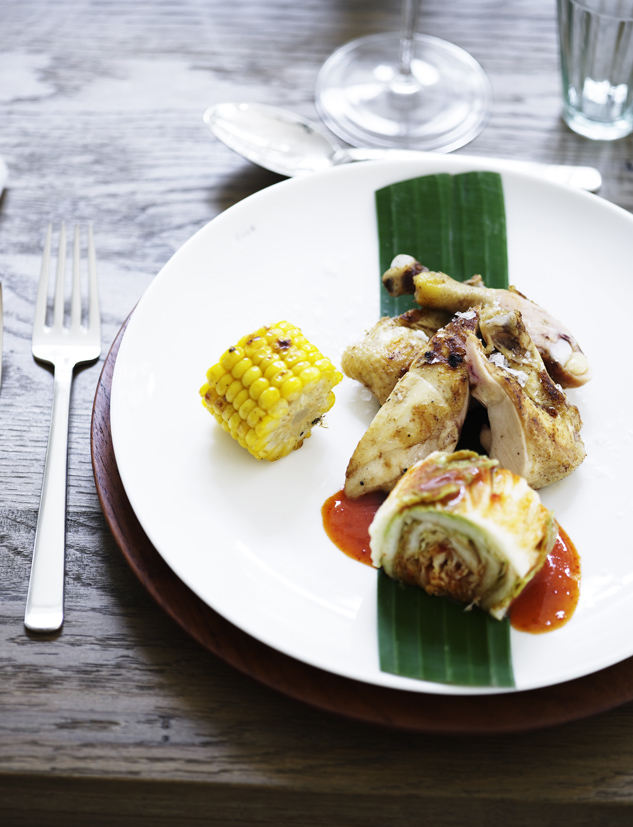 - Skær kyllingen i mundrette stykker og arranger ved siden af kålen.